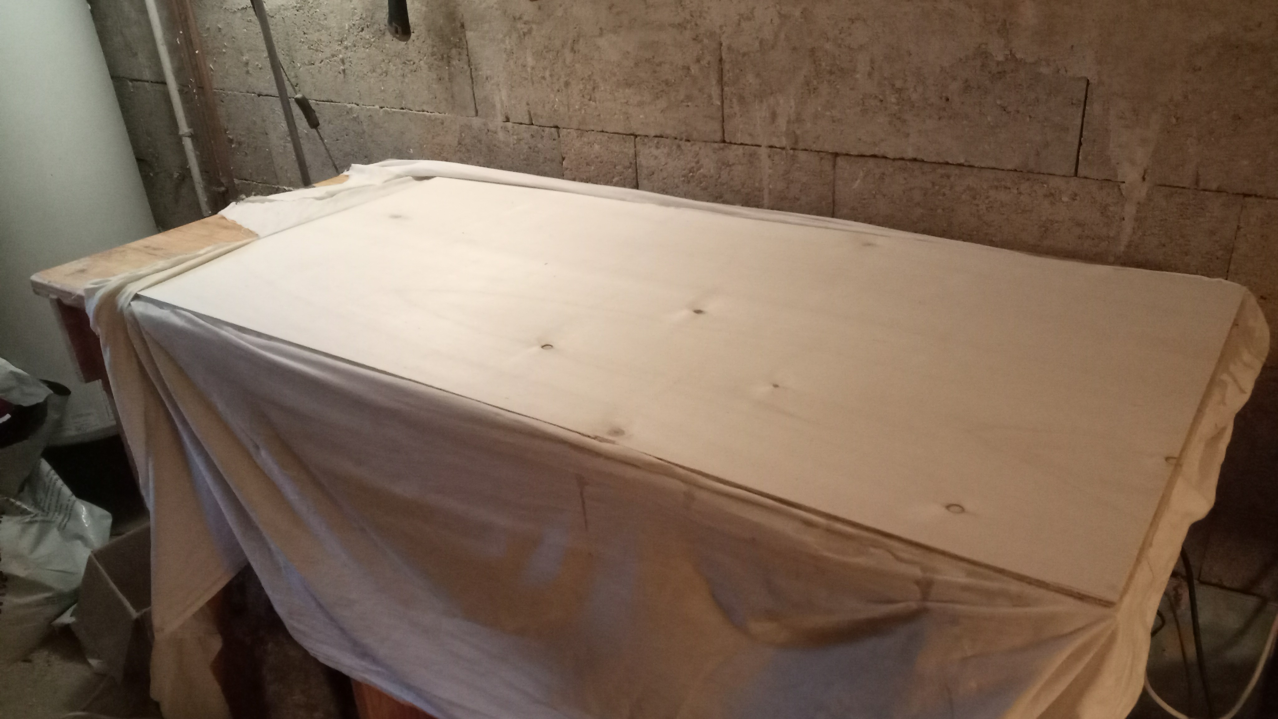 - Etape 02 | Remettre une couche de colle sur le tissus et coller la seconde planche de contreplaqué par dessus